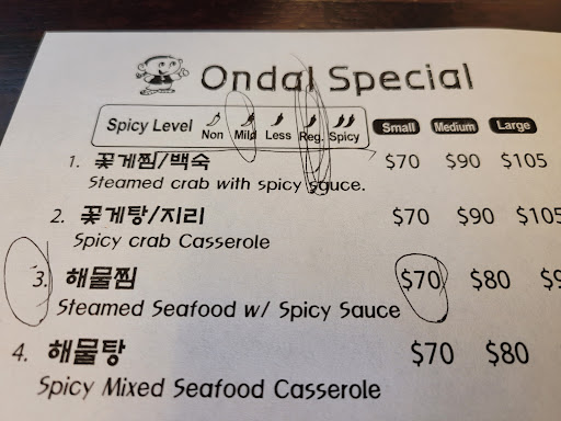 Overall, On Dal Jip's menu is a spicy seafood lover’s dream. Every dish is crafted with care, blending heat, sweetness, and richness in perfect harmony. It’s a dining experience that’s both satisfying and exhilarating, making it a top choice for anyone looking to dive into authentic Korean flavors.